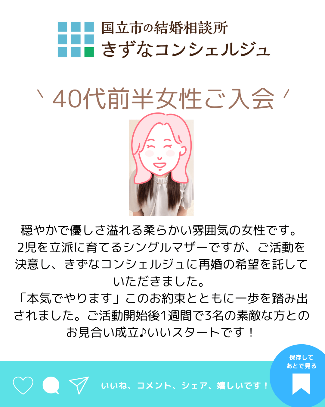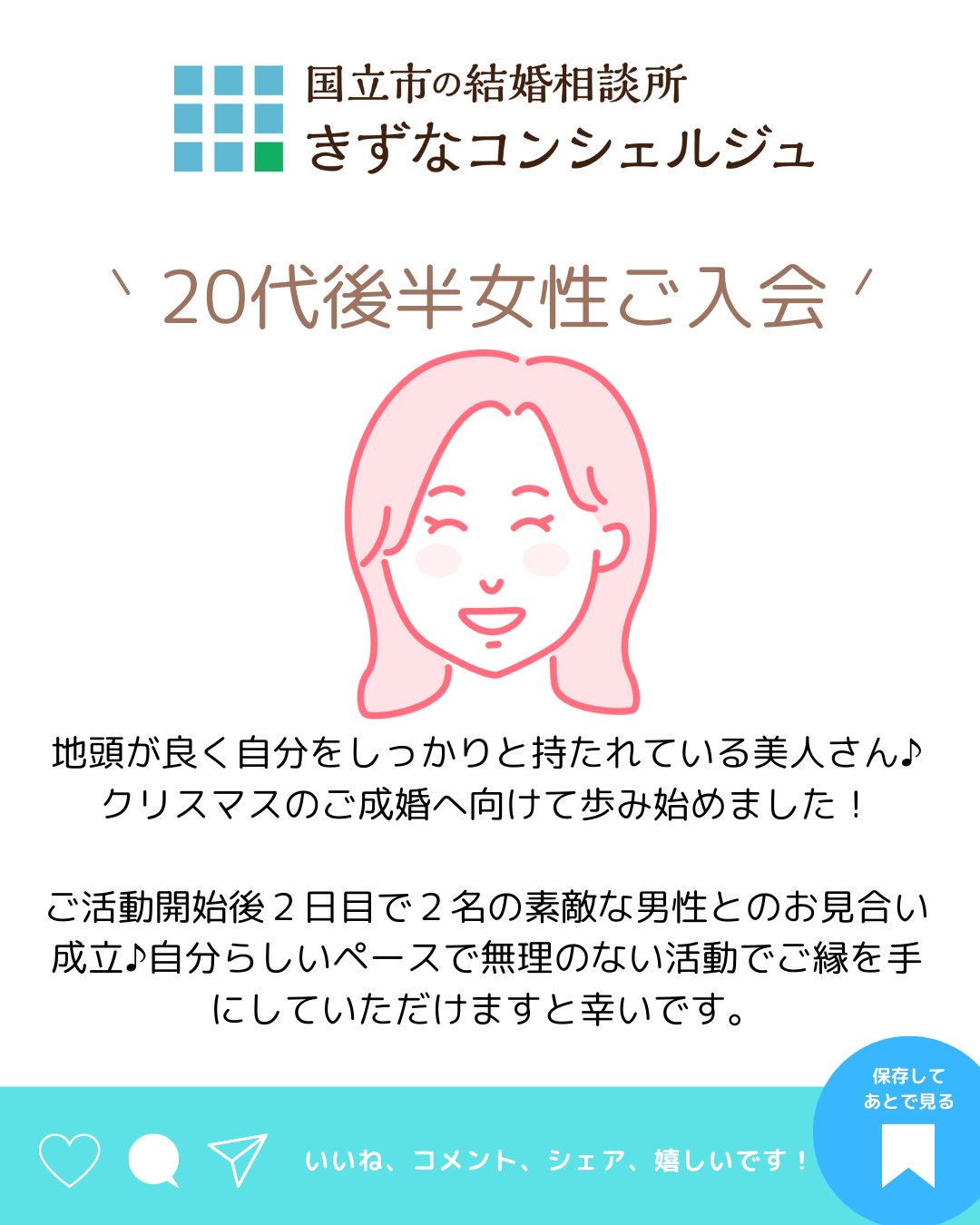 - ♡祝・ご成婚♡30代半ば女性(多摩地域)40代前半の優しい彼と縁結ばれました♪こんにちは。国立市の結婚相談所きずなコンシェルジュです。 30代女性の幸せなご成婚が生まれました♪お相手男性様は家業を継ぐ40代の経営者。 二人とも穏やかで優しいご性格。お互いの思いやりのある相思相愛カップルが生まれまし […]