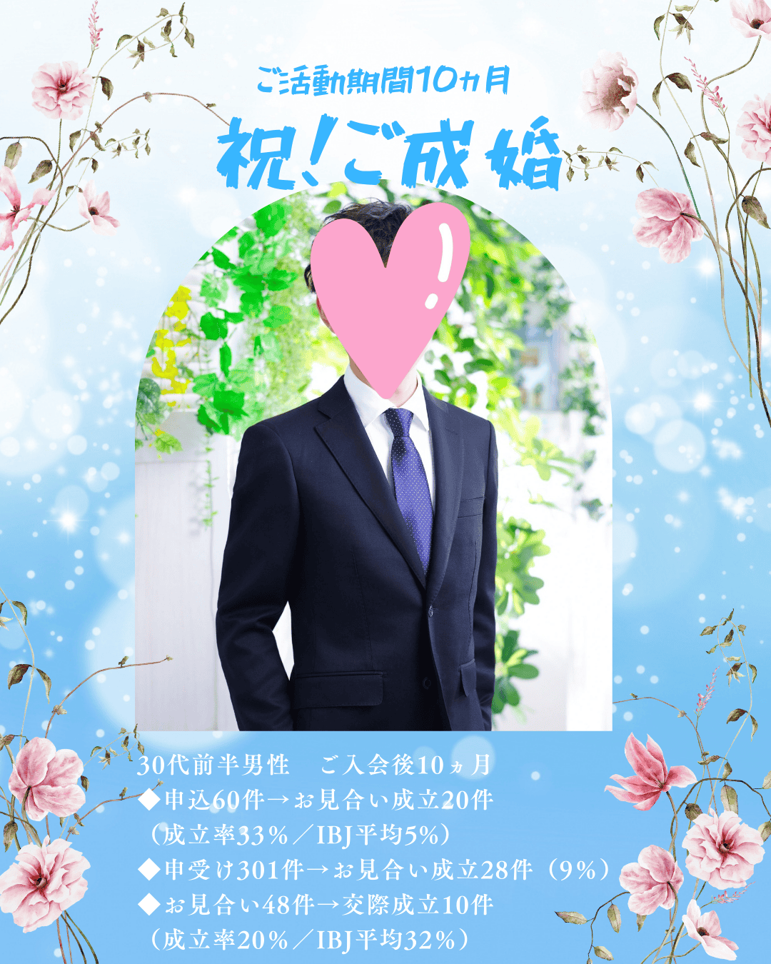 ※10名の全退会者のうち、約7名は「ご成婚による退会」実績となっております - 20代後半、30代、40代前半の婚活支援に強い結婚相談所【1か月以内のお見合い成立率100%】