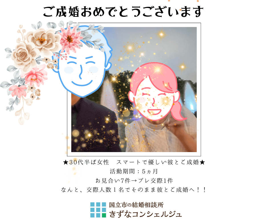 今月も素敵な20代女性会員様の幸せなご成婚が実りました。